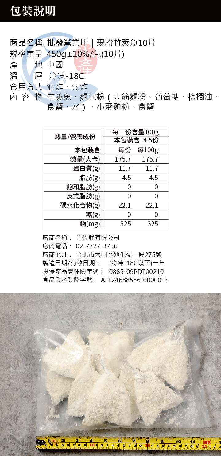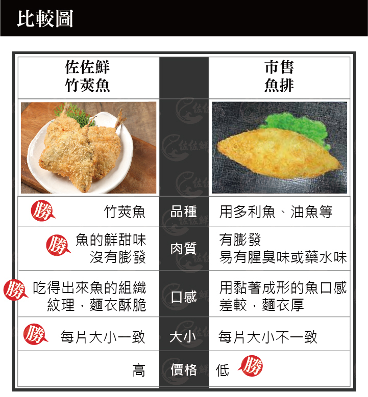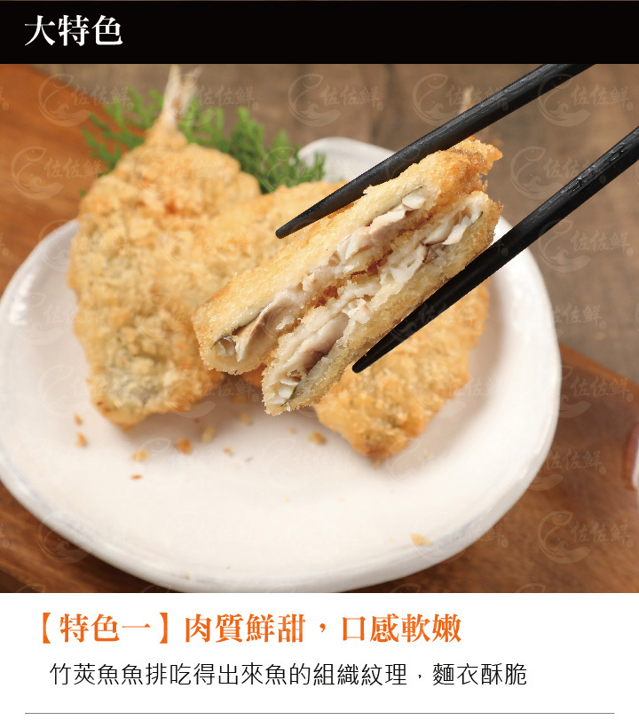 佐佐鮮裹粉竹莢魚魚排,肉質鮮甜,口感軟嫩,適用於排餐、單點、早午餐吐司,吃得出竹莢魚的鮮甜味,沒有膨發吃得出來魚的組織紋理,麵衣酥脆,每片大小一致,油炸氣炸就是簡單的美味