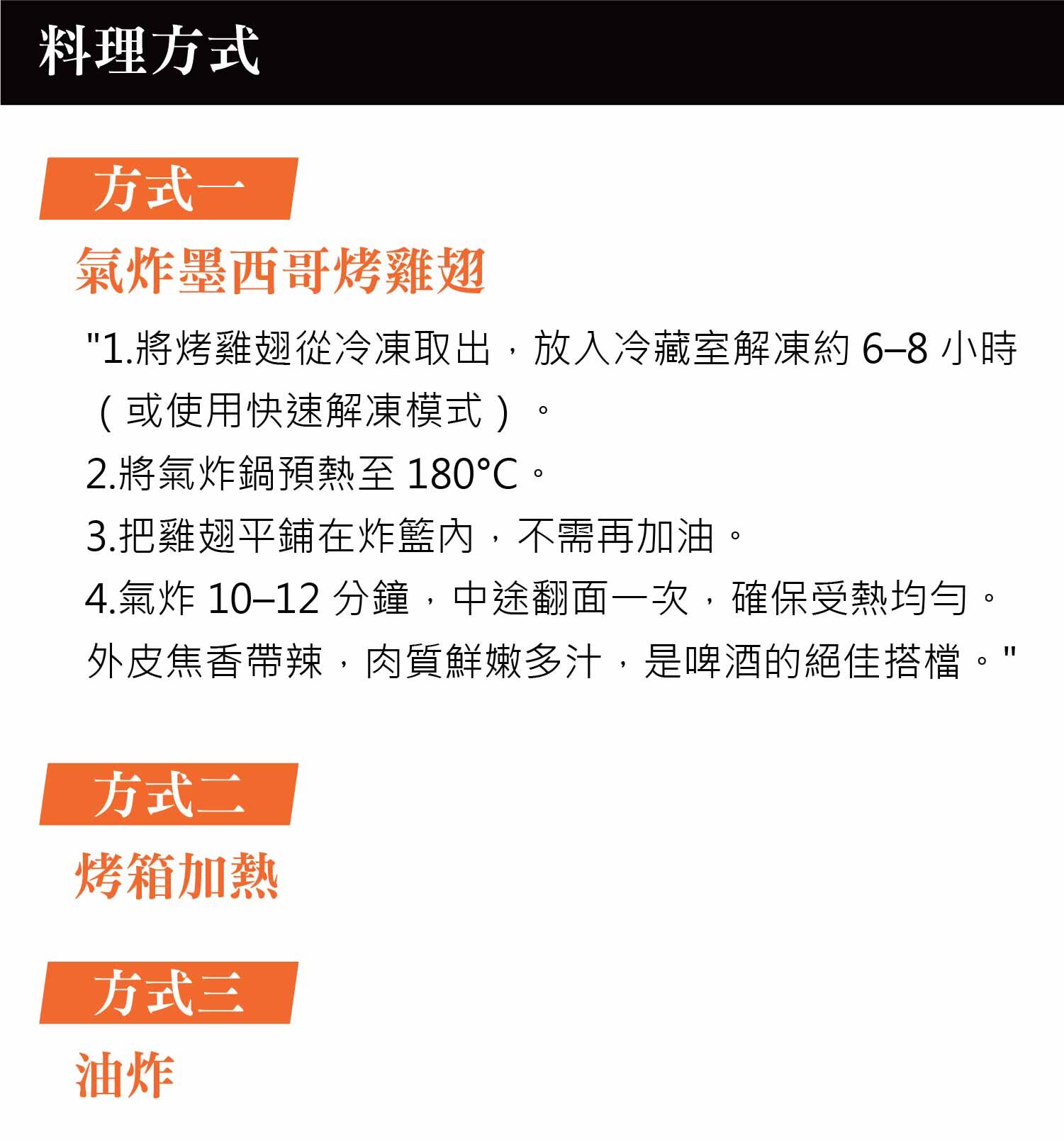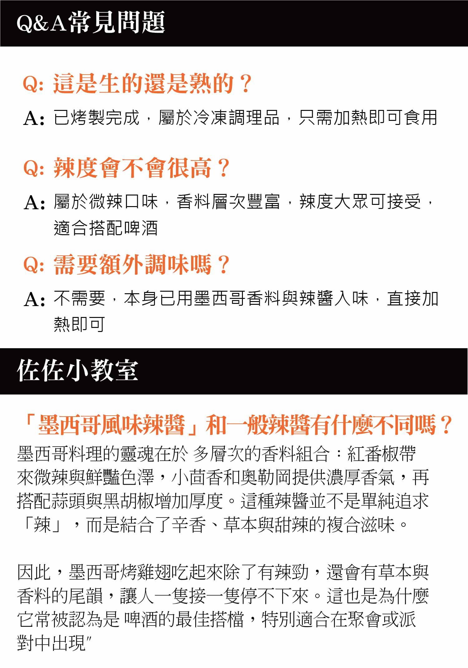 採用嚴選的國產雞翅搭配獨家特調的墨西哥風味辣醬,在家就能享受的異國風味