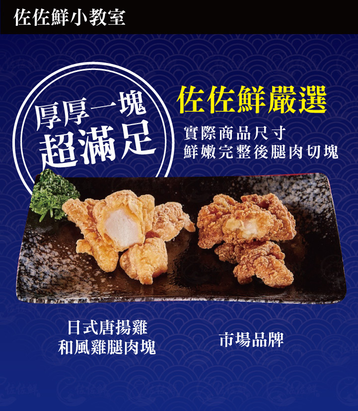 佐佐鮮日式唐揚雞和風雞腿肉塊內容物肉多且鮮嫩富有雞腿的膠質感,雞腿的部位,肉質較滑嫩且含脂肪量比雞胸肉多不像雞胸較為乾澀,職人手作六道工序快速料理方便又美味