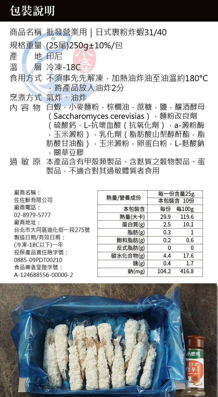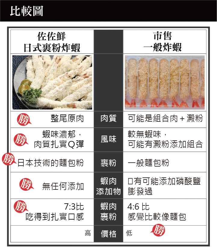 佐佐鮮日式裹粉炸蝦蝦肉佔比70%以上,正統日本技術,全手工製作,採用日本天婦羅工法,手工製作,不用去日本就可以吃到純正日本風味麵衣薄脆,每一口都吃得到蝦肉,不會像其他炸蝦裹著很厚的粉