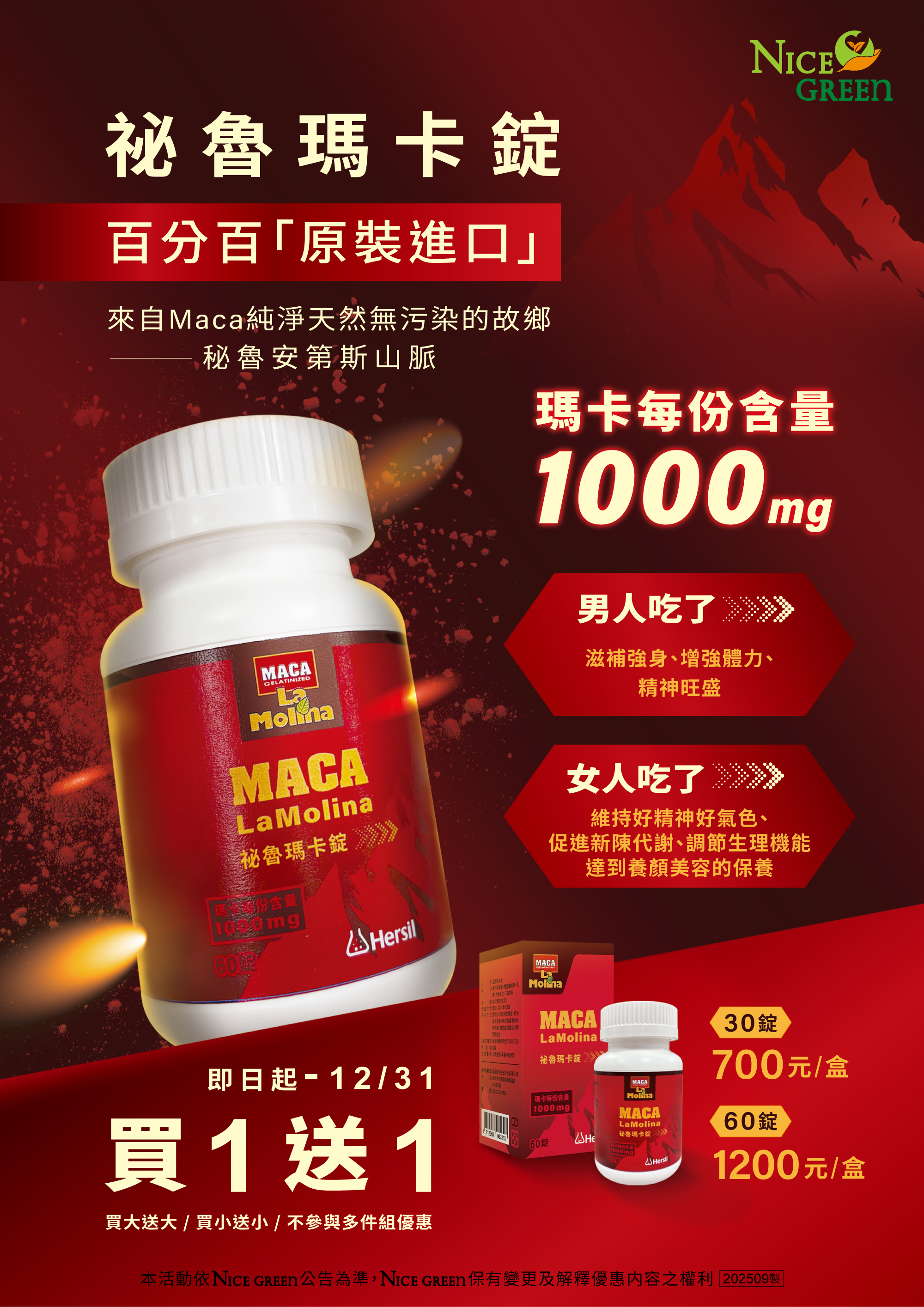 祕魯瑪卡錠60錠 2 瓶 / 祕魯瑪卡錠30錠 2 瓶