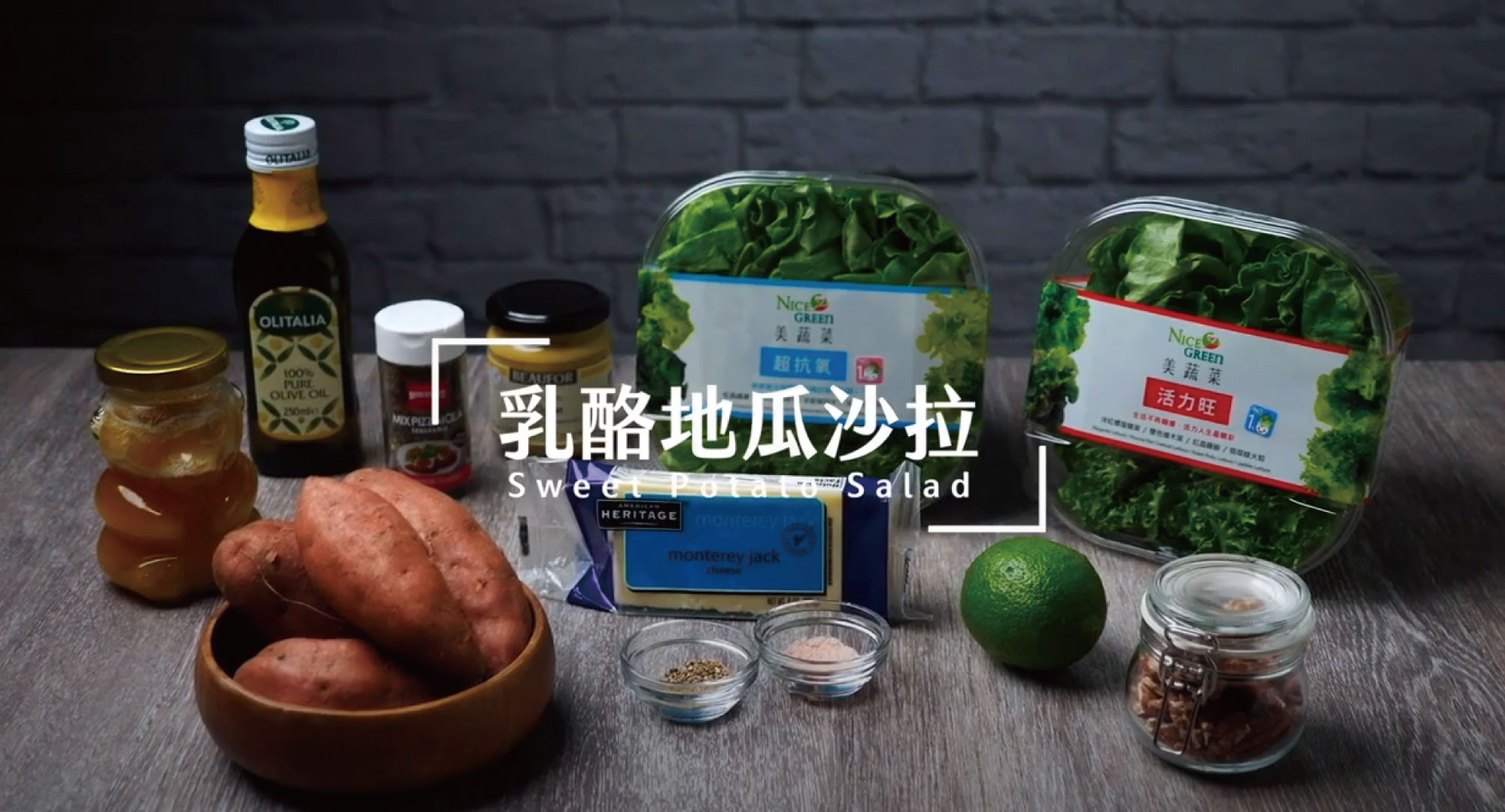 2. 加入烤好的地瓜、蒙特利傑克起司跟薄鹽胡桃