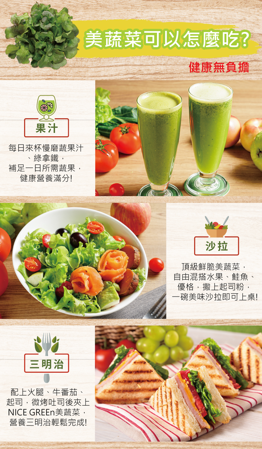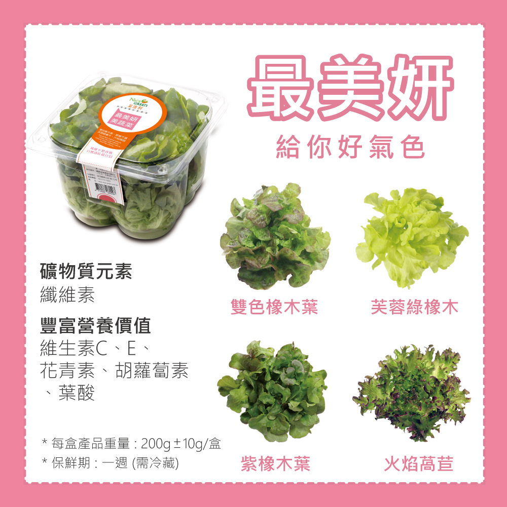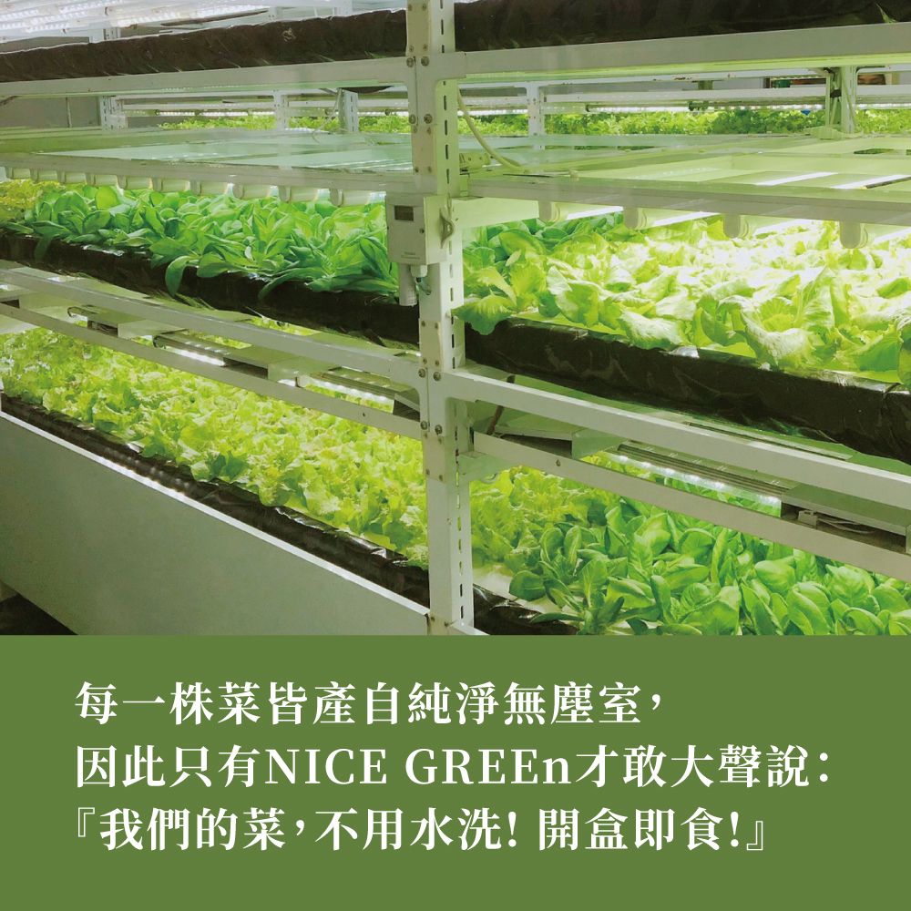 讓您從此不用擔心颱風過後的菜價飆漲,也不用擔心農藥殘留及重金屬汙染,更不用擔心病蟲害及硝酸鹽過量,請放心將健康交給NICE GREEn吧!