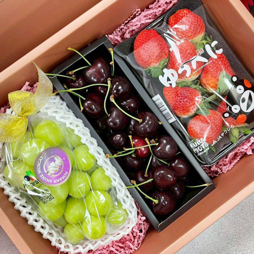 三品水果綜合禮盒-E|麝香葡萄 1 串 + 日本草莓 1 盤 + 櫻桃 480g - Nice Green