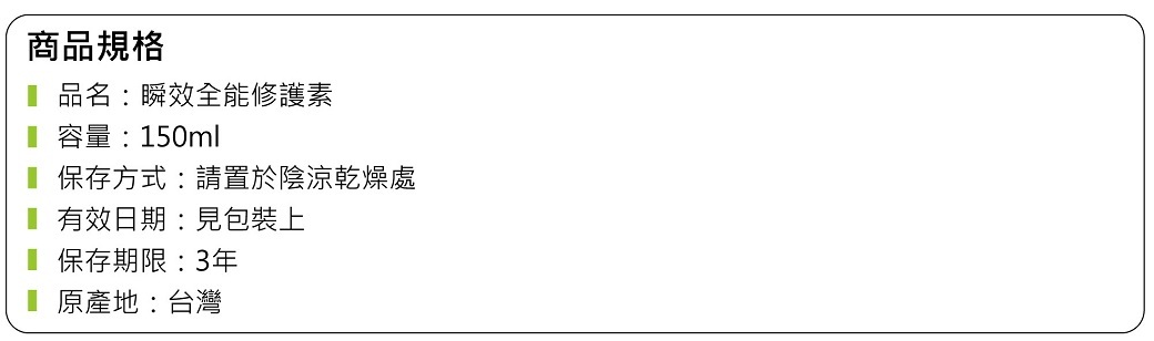 1. 吸收快、不黏膩,防止髮絲分叉及斷裂,使頭髮柔順有光澤!