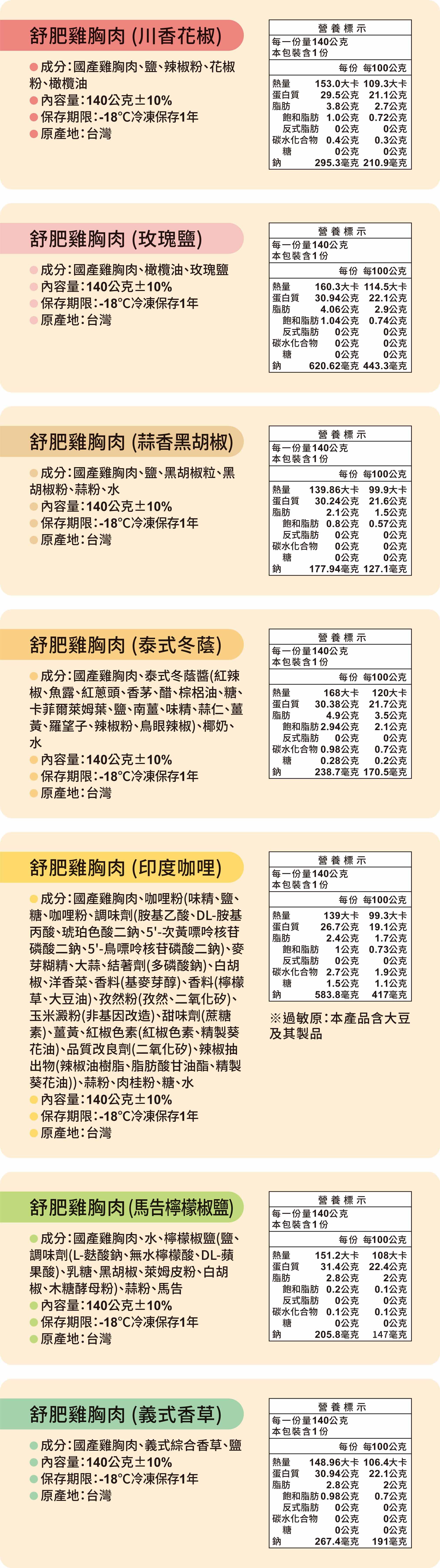 ※ 舒肥雞、地瓜解凍冷藏配送後保存期限為5天。
