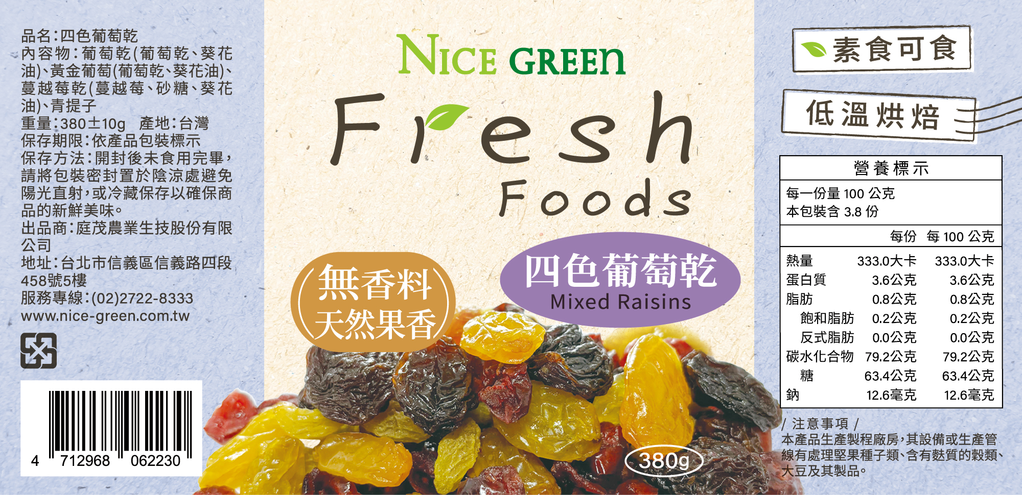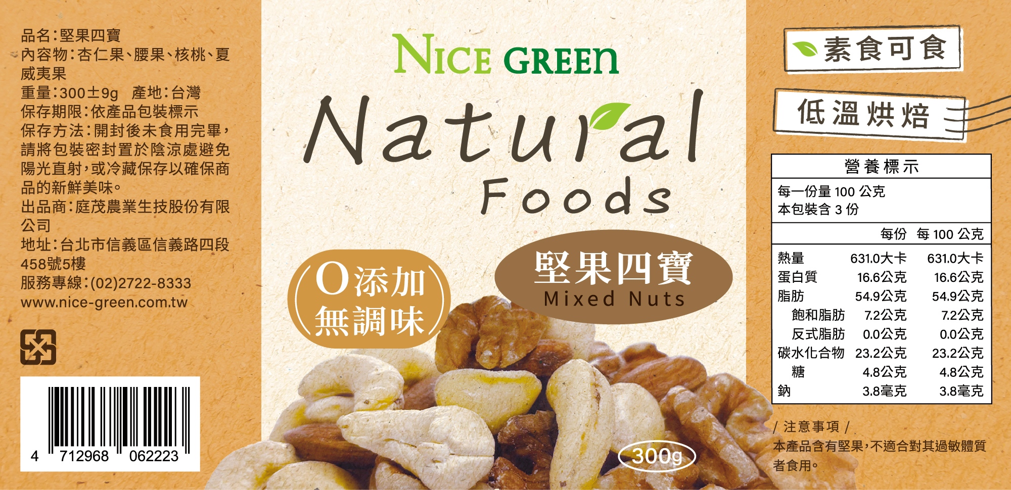 ※ 美蔬菜、堅果四寶、四色葡萄乾為冷藏配送,其餘商品為冷凍配送。