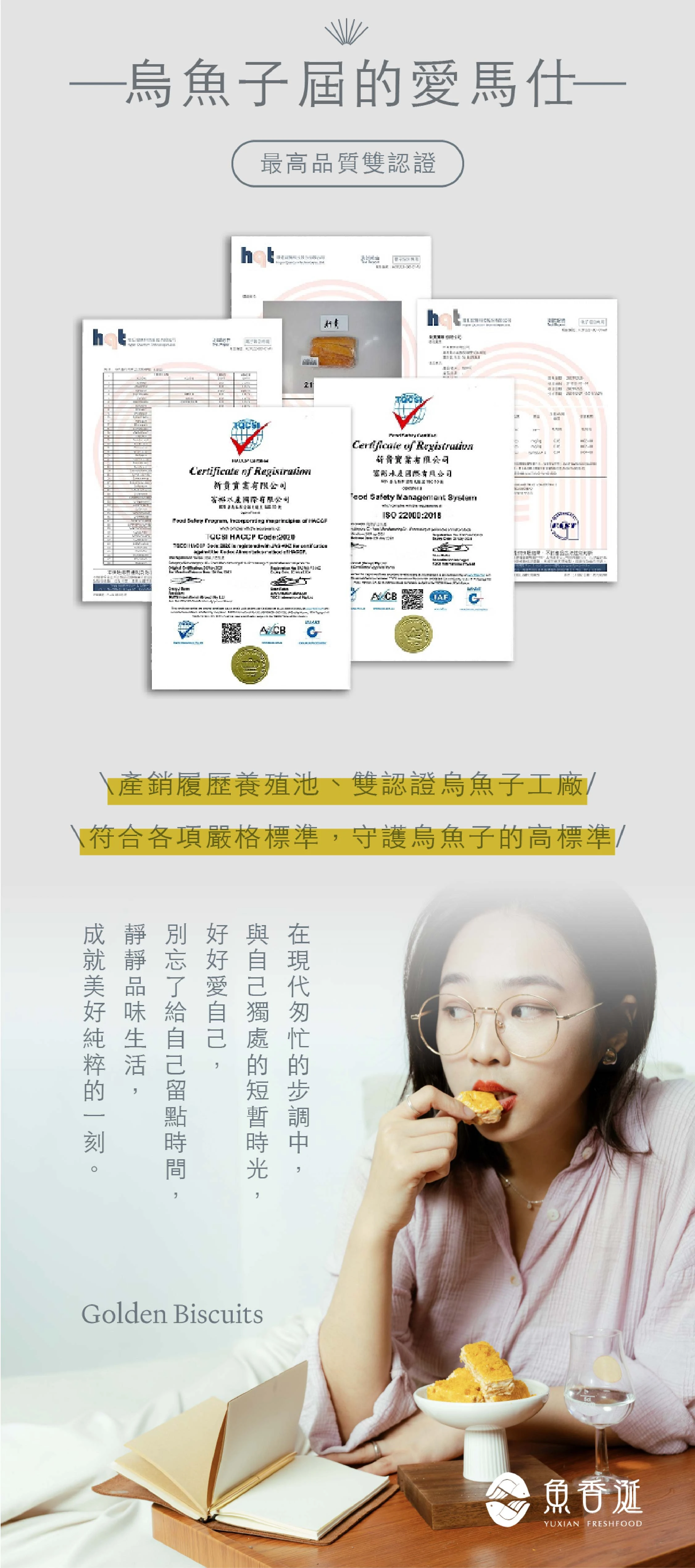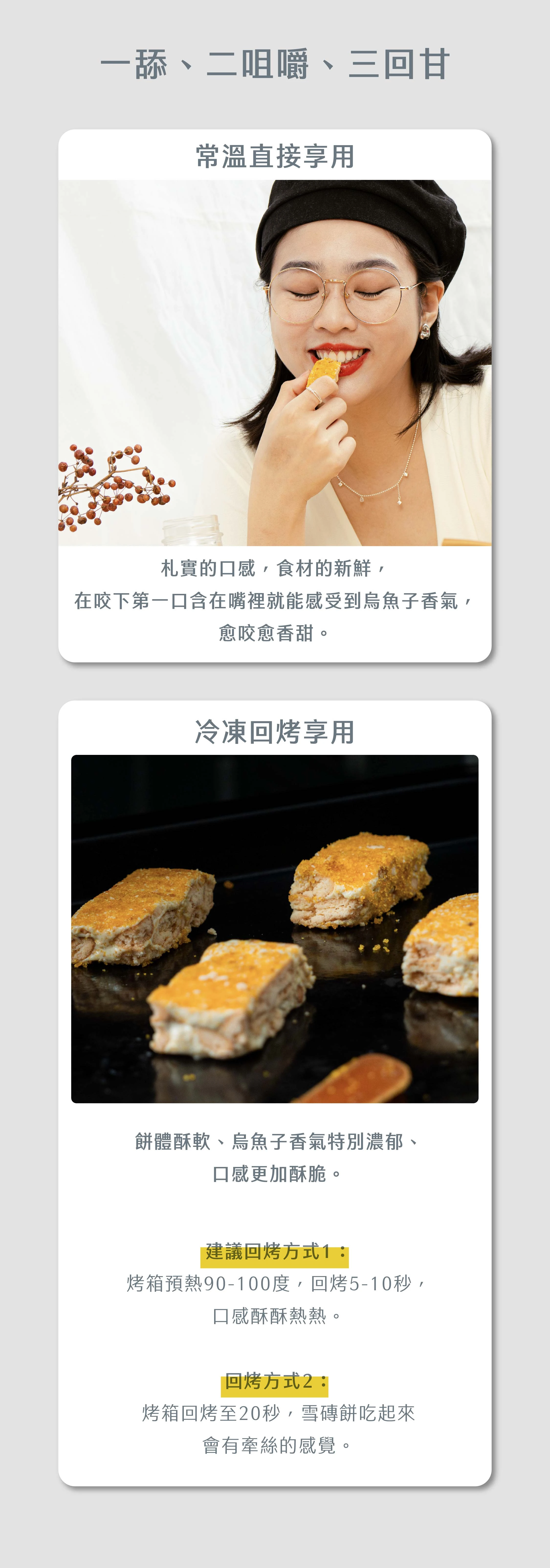 單盒內容物:一口琥珀烏魚子 30g + 經典原味烏金雪磚餅 10 入