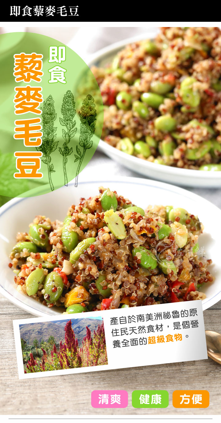 .佐佐鮮即食藜麥毛豆,清爽養生又健康方便的藜麥毛豆產自於南美洲祕魯的原住民天然食材,