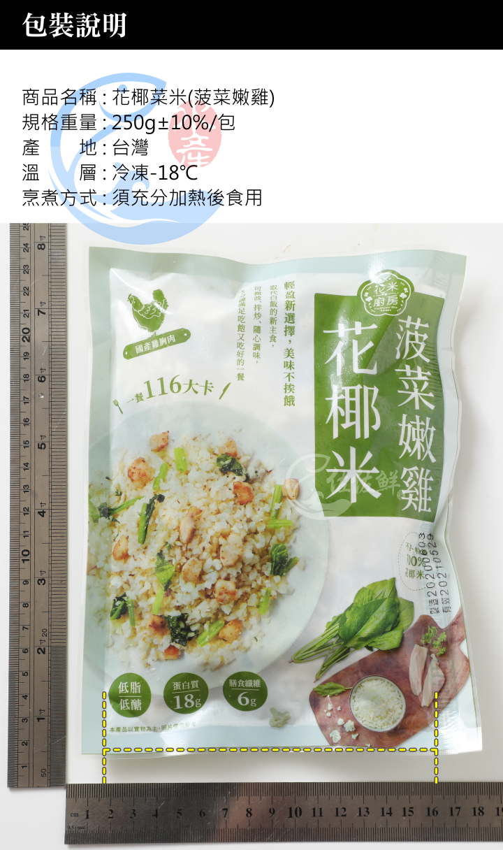 .花椰菜米搭配國產雞胸肉以及鮮嫩菠菜,新鮮國產等級最佳蛋白質攝取來源,